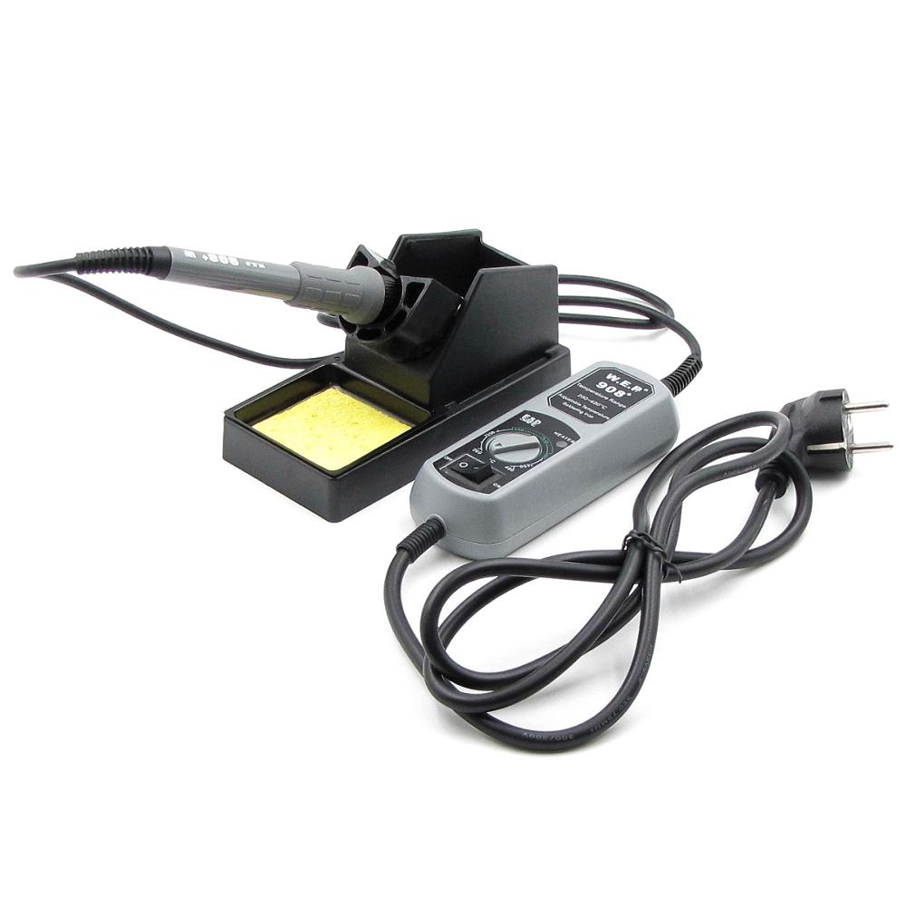 Паяльник з портативним блоком управління WEP 908+ с пз підставкою що застосовується при лудінні і пайці для нагріву деталей, флюсу, розплавлення припою і внесення його в місце контакту деталей, що спаюються.