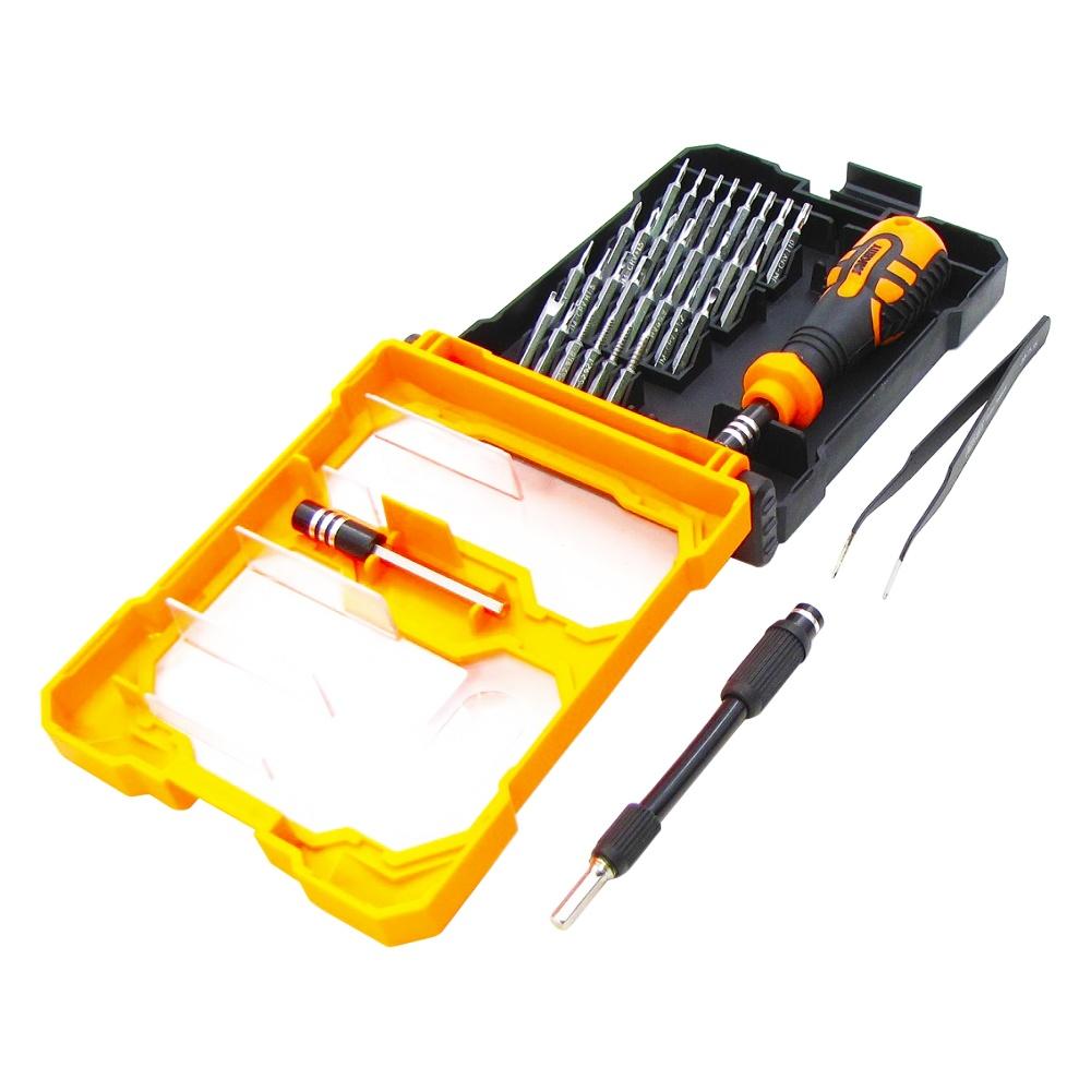Набір інструментів Jakemy JM-8159 (ручка, 30 біт, подовжувач 60мм, гнучкий подовжувач 100мм, вигнутий пінцет ESD) - це багатофункціональний комплект, призначений для виконання точних робіт з електронікою, ювелірними виробами, окулярами і іншими дрібними предметами. Набір включає спеціальні викрутки для роботи з iPhone, iPad і MacBook, а також зручну нековзну ручку, виготовлену з матеріалів PP і TPR.