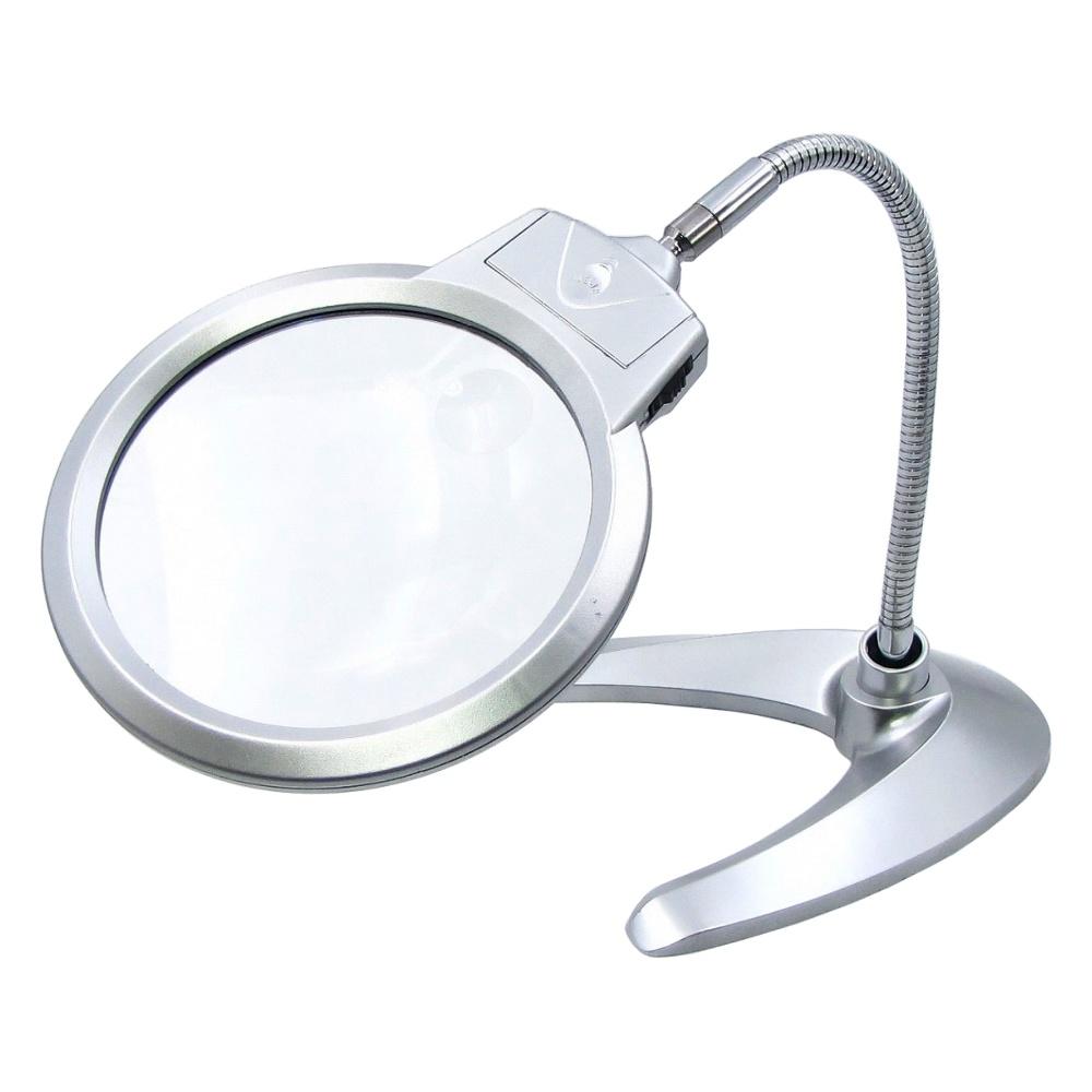 Лупа подвійна на гнучкій нозі з підставкою MG4B-10 з LED-підсвічуванням (велика лупа d=125мм, 2x; мала лупа d=26мм, 5x)