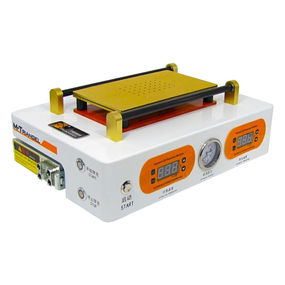 Автоклав з вакуумним сепаратором M-Triangel M2 7" - надійне обладнання, призначене для склеювання дисплейного модуля. Автоклав оснащений вакуумним сепаратором, який дозволяє розклеїти будь-які дисплейні модулі. Сепаратор оснащений компресором для вакуумного способу фіксації скла. Металева робоча поверхня дозволить працювати з гаджетами різних розмірів. Максимальна діагональ гаджета складає 7 дюймів. Цифрову інформацію надає 2 дисплея, які відображають поточні значення температури робочої поверхні. Регулятори дозволять відкоригувати необхідні показники.