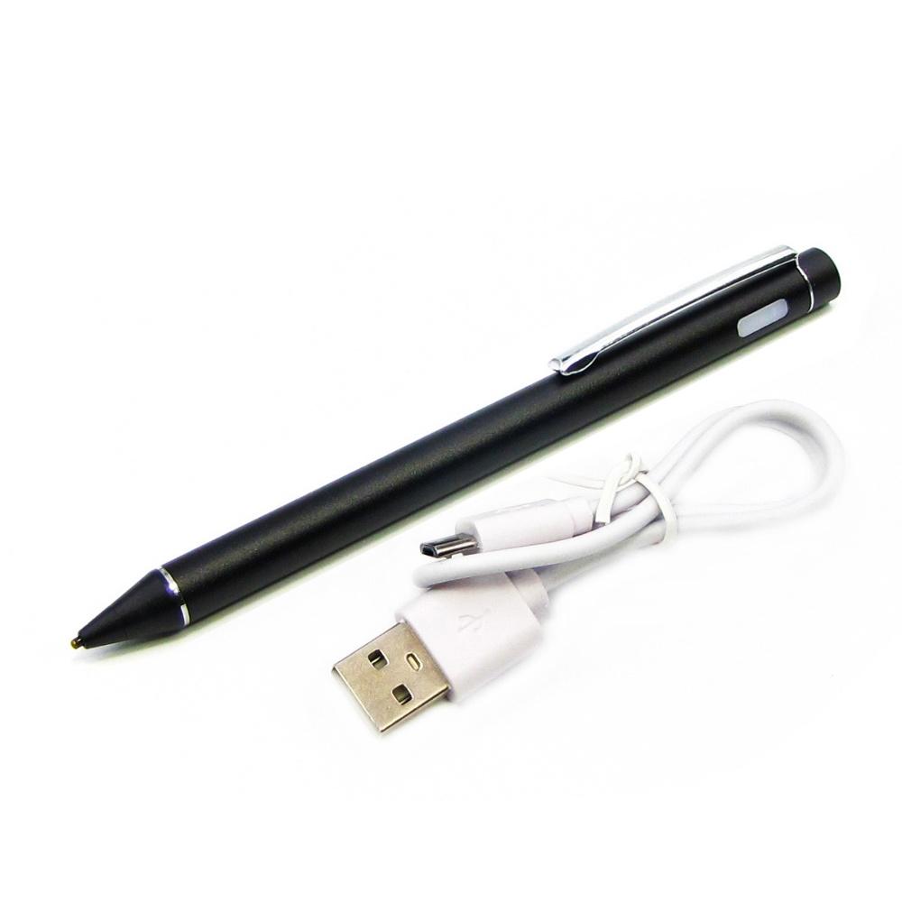 Стілус ємнісний, високоточний, активний, з вбудованою батареєю, алюмінієвий, чорний, з кнопкою Увімк./ Вимк.