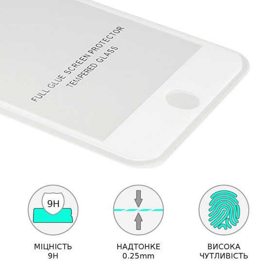 Захисне скло для Apple iPhone 7 Plus/ 8 Plus Full Glue (0.25 мм, 2.5D, біле) Люкс