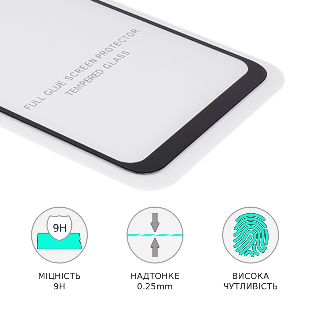 Захисне скло Full Glue Люкс з захистом рівня 9Н захистить дисплей вашого гаджета від подряпин, відколів та інших видів ушкоджень. Олеофобне покриття відштовхує пил і бруд, перешкоджає виникненню відбитків пальців на дисплеї.