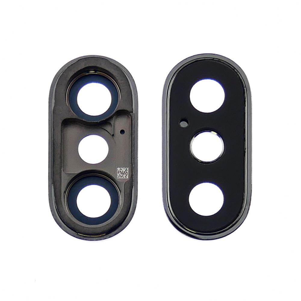 Скло камери для Apple iPhone X чорне із сірою рамкою