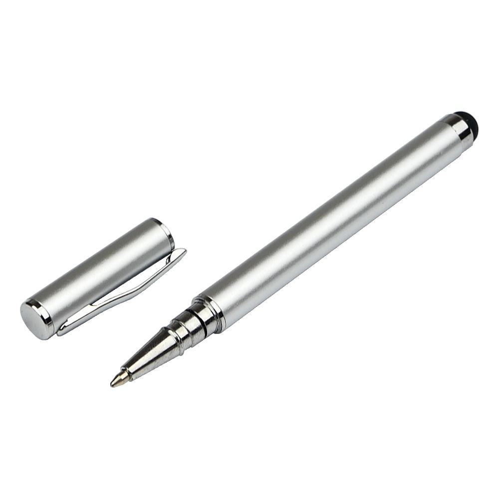 Стілус ємнісний, з кульковою ручкою, металевий, сріблястий.
