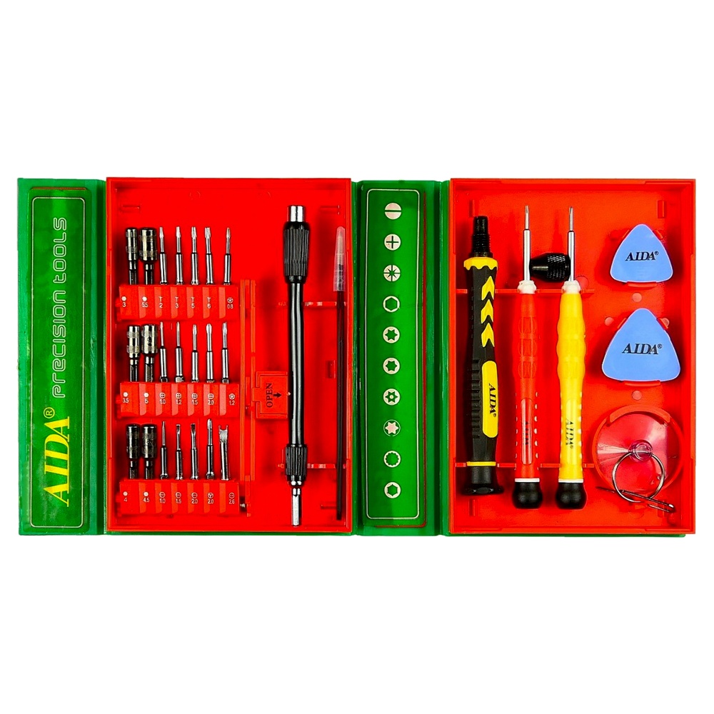 Набір інструментів Aida AD-3001 (викрутка з бітами 21шт, подовжувач, викрутки *0.8 і Y0.6, пінцет, 2 медіатори, присоска)