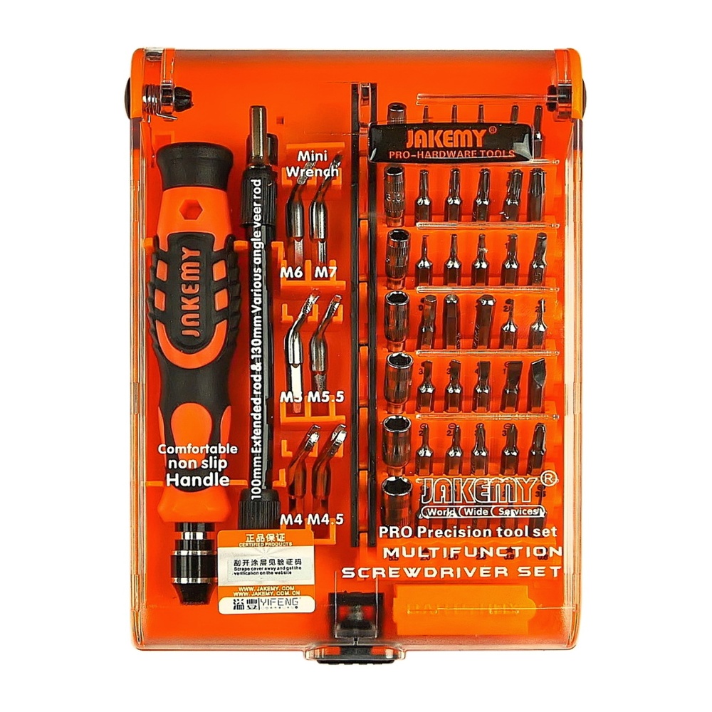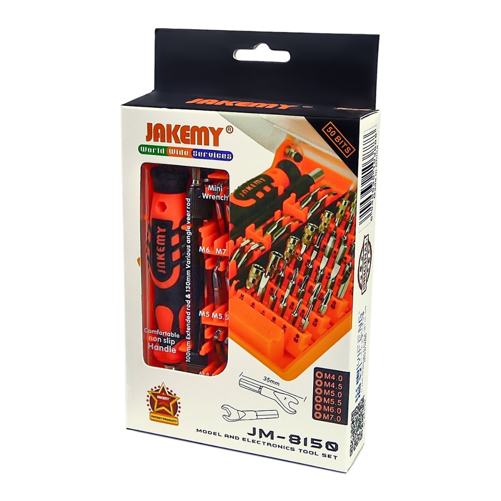 Набір інструментів Jakemy JM-8150 (ручка, 48 біт, подовжувач 60мм, гнучкий подовжувач 100мм) - це універсальний комплект для виконання ремонтних робіт з високою точністю. Завдяки різноманітності біт і додатковим подовжувачам, цей набір дозволяє легко і ефективно працювати з різними електронними пристроями, включаючи мобільні телефони, ноутбуки і інші гаджети.