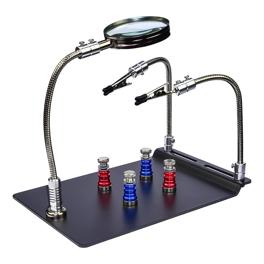 Тримач плат TE-804 з затискачами на гнучких ніжках (2шт), магнітними фіксаторами (4шт) і лінзою (d=62мм, 3x)