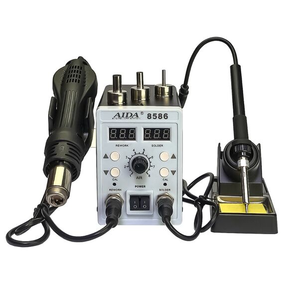 Паяльна станція AIDA 8586, фен, паяльник з нагрівальним елементом Hakko, цифрова індикація
