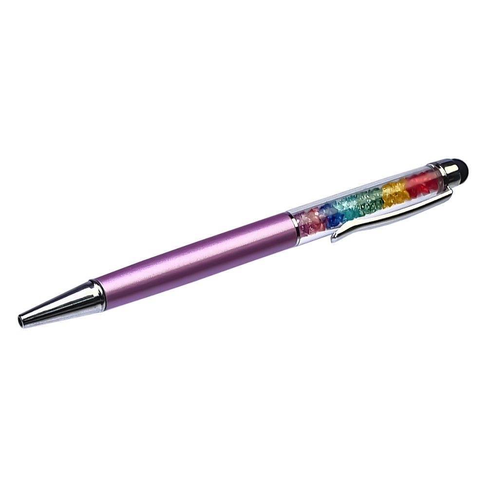 Стилус ємнісний, з кульковою ручкою, металевий, світло-рожевий з кристалами кольорів веселки
