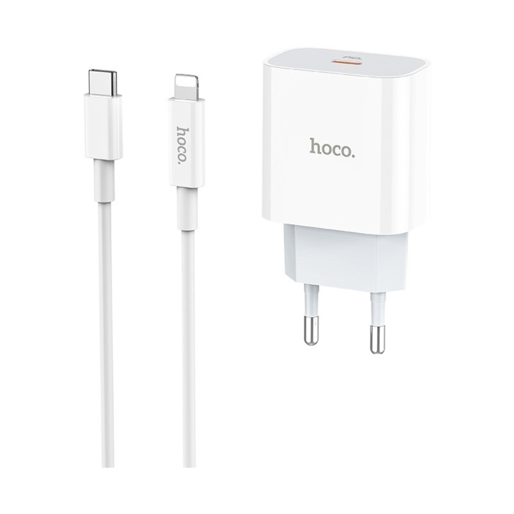 Мережевий зарядний пристрій Hoco C76A Plus Type-C PD 20W білий + кабель Type-C to Lightning
