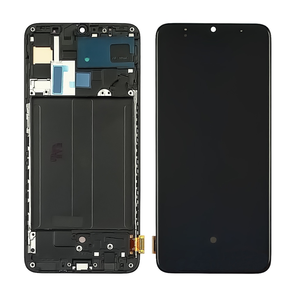 Дисплей для Samsung A705 Galaxy A70 (2019) з чорним тачскрином та чорною корпусною рамкою (з широким ободком) OLED