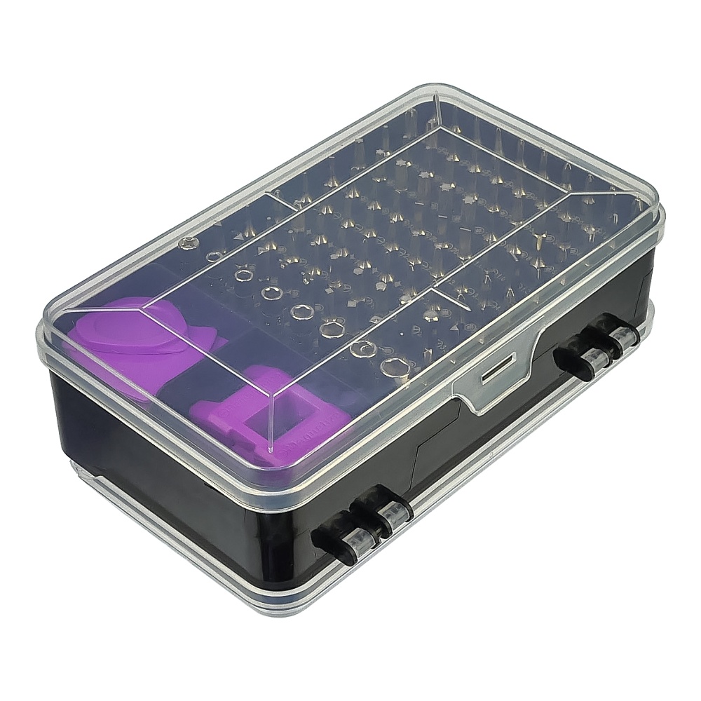 Набір інструментів Aida A-135in1 (ручка, 115 біт, 2 подовжувачі, пінцет, 13 оупентулів, магнітайзер, 2 SIM-ключи) - це компактний комплект для ремонту і розбирання різних електронних пристроїв. У комплекті ви знайдете 115 різних біт, що забезпечує універсальність і зручність у роботі. Два подовжувачі дозволяють працювати у важкодоступних місцях, а пінцет і 13 оупентулів надають додаткові можливості для акуратного і точного ремонту. Магнітайзер допомагає намагнічувати і розмагнічувати інструменти, а два SIM-ключи забезпечують легкий доступ до SIM-карт.
