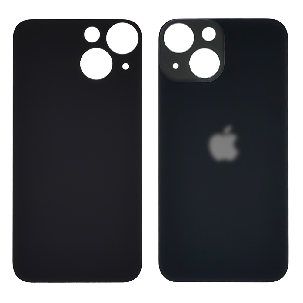Заднє скло корпусу для Apple iPhone 13 mini Midnight (чорне) (Big hole) - виконано із загартованого скла, призначена для заміни старої або пошкодженої задньої кришки. Кришка повністю сумісна зі смартфоном за всіма параметрами — від форми до отворів під камери та датчики.