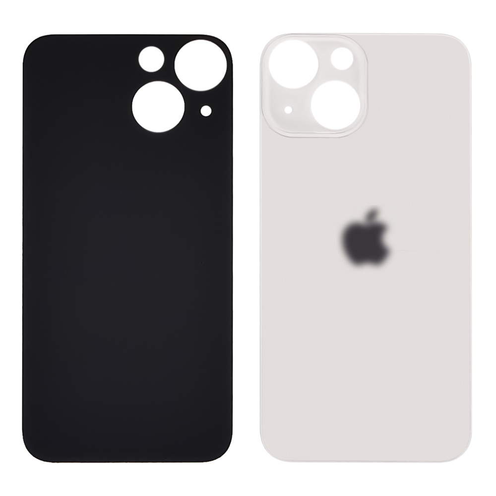 Заднє скло корпусу для Apple iPhone 13 mini Starlight (біле) (Big hole) - виконано із загартованого скла, призначена для заміни старої або пошкодженої задньої кришки. Кришка повністю сумісна зі смартфоном за всіма параметрами — від форми до отворів під камери та датчики.