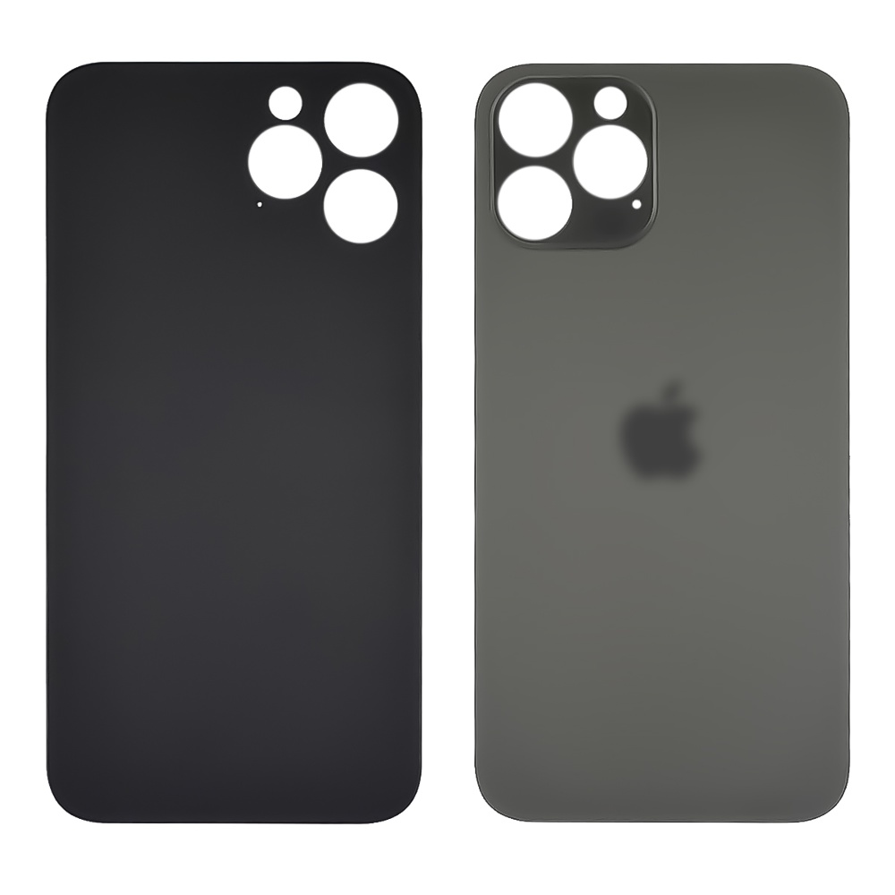 Заднє скло корпусу для Apple iPhone 12 Pro Max Graphite (темно-сіре) (Big hole) Original - виконано із загартованого скла, призначена для заміни старої або пошкодженої задньої кришки. Кришка повністю сумісна зі смартфоном за всіма параметрами — від форми до отворів під камери та датчики.