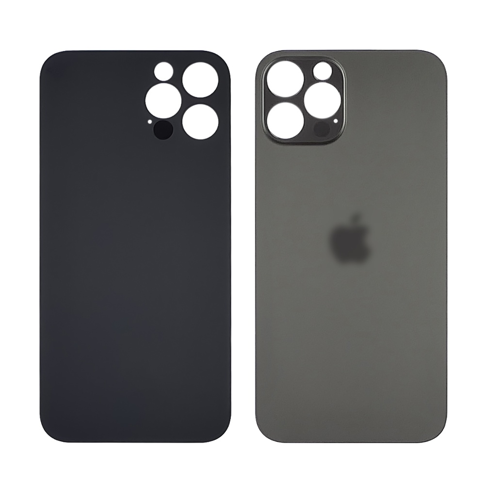 Заднє скло корпусу для Apple iPhone 12 Pro Graphite (темно-сіре) (Big hole) Original - виконано із загартованого скла, призначена для заміни старої або пошкодженої задньої кришки. Кришка повністю сумісна зі смартфоном за всіма параметрами — від форми до отворів під камери та датчики.