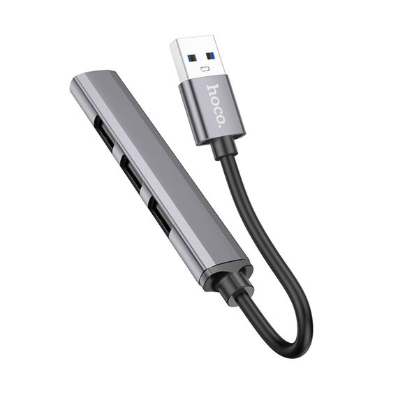 Мультіадаптер хаб Hoco HB26 4в1 USB to USB 3.0 (F)/3 USB 2.0 (F) 0.13m темно-сріблястий - зручний мультитул для вашої техніки. Ви зможете підключити кілька USB-пристроїв одночасно та обмінюватися даними з великою швидкістю завдяки USB 3.0.