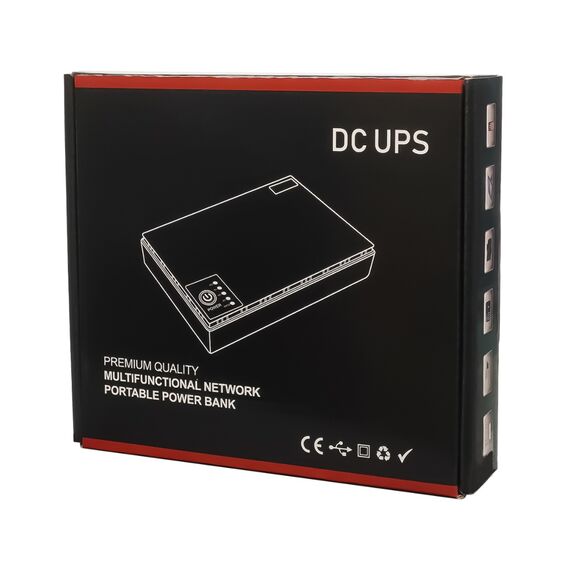UPS DC1018P 10400 mAh чорний - портативне, багатофункціональне джерело безперебійного живлення для забезпечення живлення дрібних електроприладів і апаратури, що мають напругу 5В, 9В або 12В (модеми, роутери, маршрутизатори, акваріумне обладнання, камери відеоспостереження тощо) у разі екстреного вимкнення електропостачання в мережі.