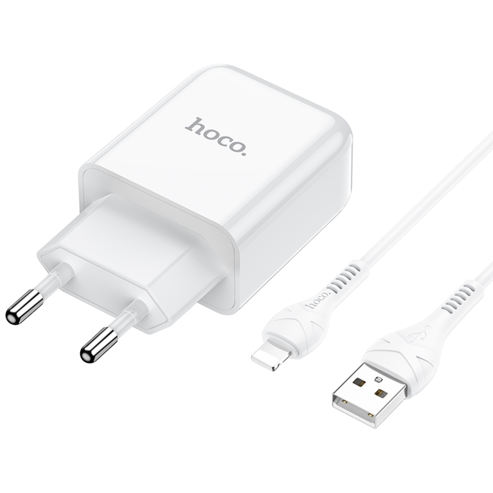 Мережевий зарядний пристрій Hoco N2 USB білий + кабель USB to Lightning