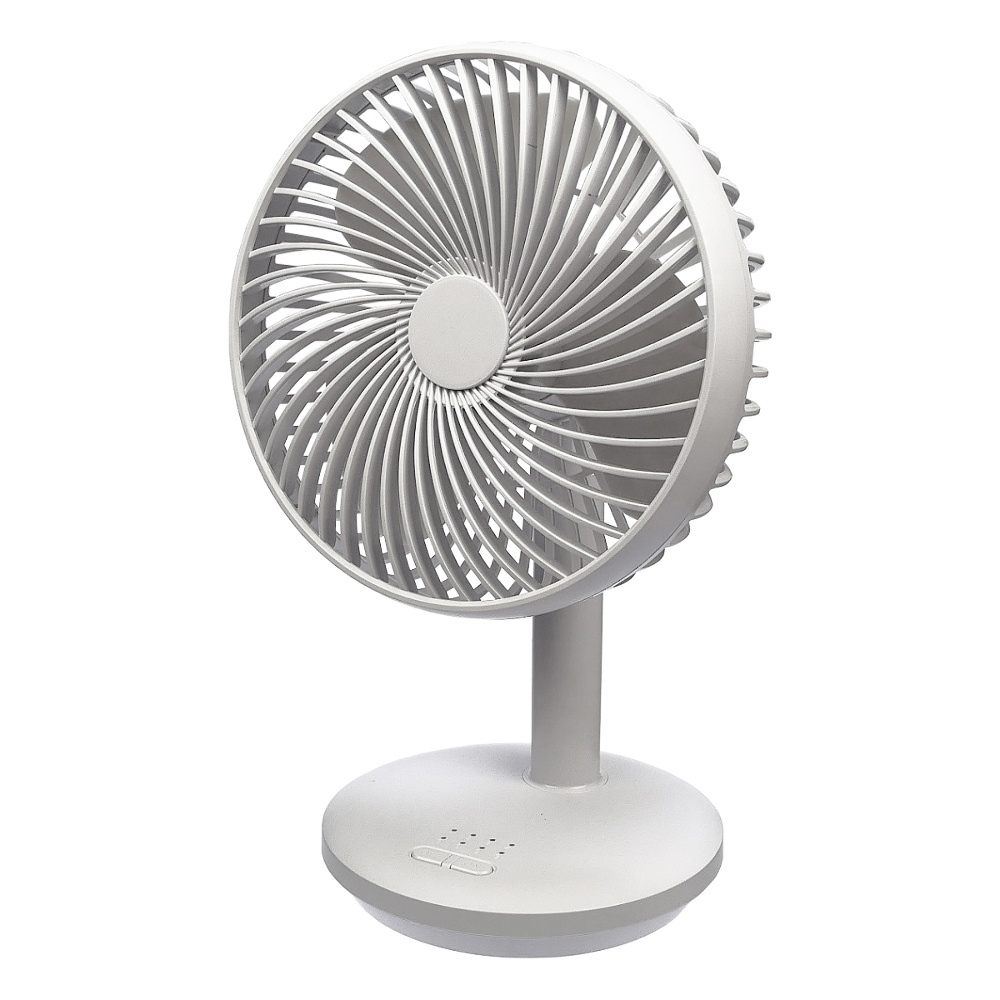 Настільний вентилятор GXQC D76 білий - компактний і потужний портативний вентилятор з безщітковим двигуном. Оснащений 18650 літієвою батареєю ємністю - 4000 mAh, він забезпечить вам безперервний потік свіжого повітря до 8 годин. від будь-якого USB порту 5V його можна підключити до мережного адаптера, повербанка або ноутбука за допомогою кабелю, що йде в комплекті.