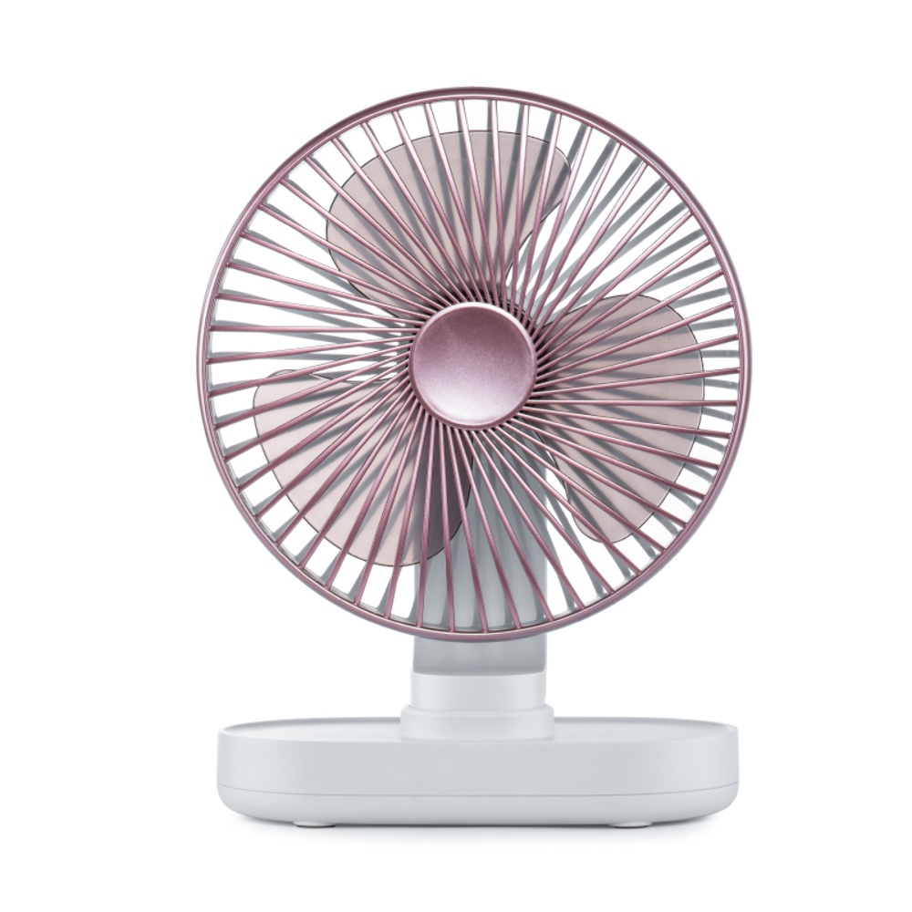Настільний вентилятор GXQC D76 рожево-золотистий - компактний і потужний портативний вентилятор з безщітковим двигуном. Оснащений 18650 літієвою батареєю ємністю - 4000 mAh, він забезпечить вам безперервний потік свіжого повітря до 8 годин. від будь-якого USB порту 5V його можна підключити до мережного адаптера, повербанка або ноутбука за допомогою кабелю, що йде в комплекті.