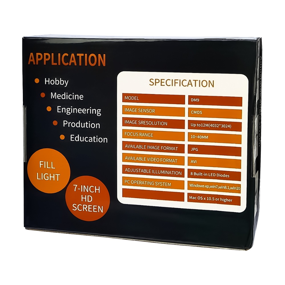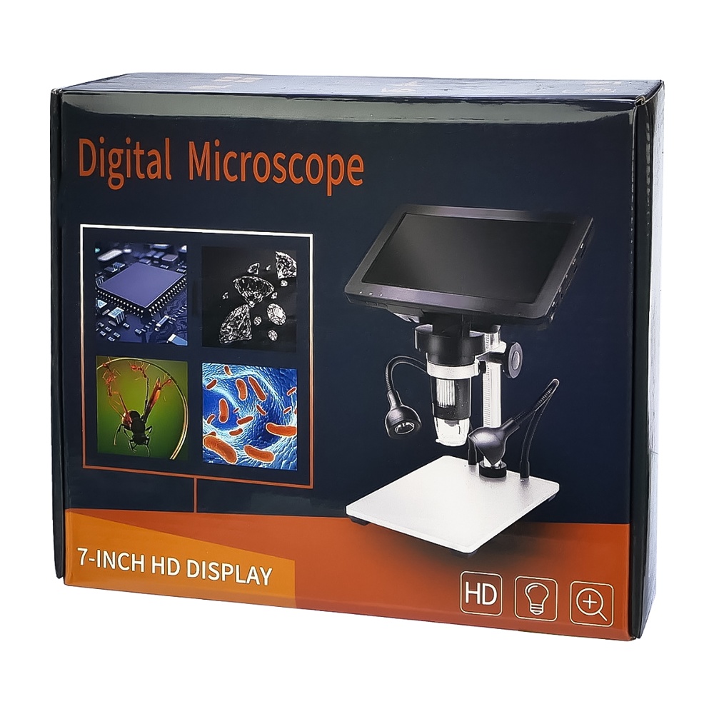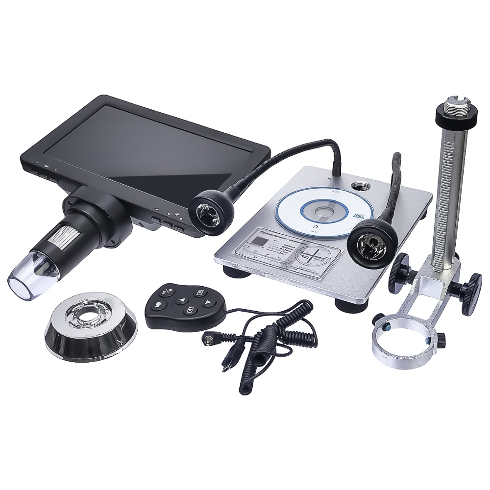 Цифровий мікроскоп з монітором 7" і штативом DM9 (запис на microSD, фокус 20-170мм, кратність збільшення 800X, підсвічування, пульт ДК, 5V)