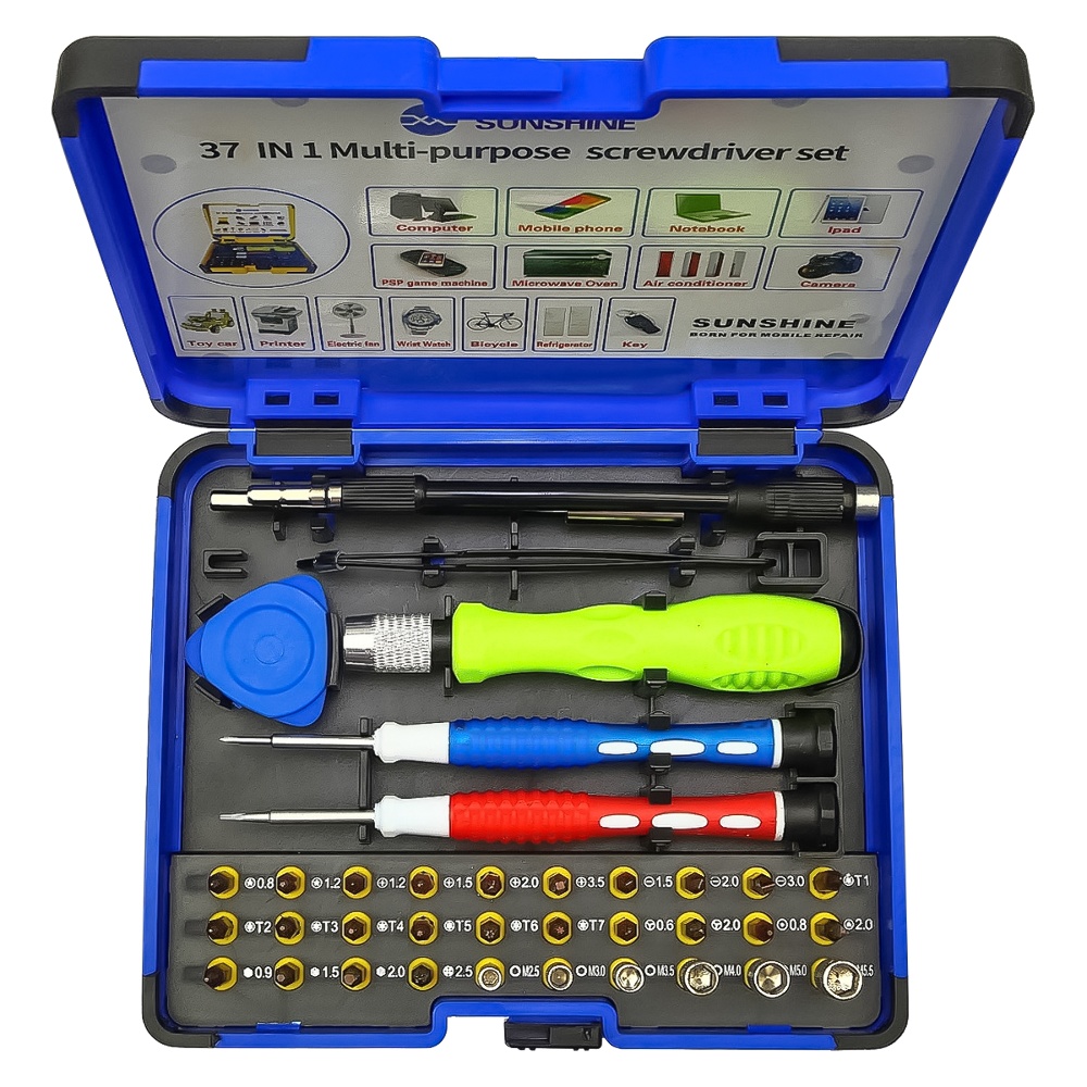 Набір інструментів Sunshine SS-5110 є універсальним комплектом для ремонту мобільних пристроїв, комп'ютерів, електроніки і інших пристроїв. За його допомогою ви зможете виконувати точну і якісну роботу без пошкодження деталей.