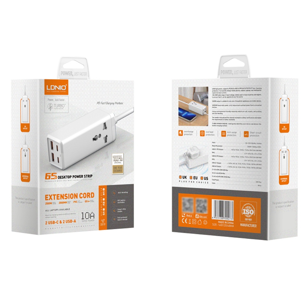 Мережевий зарядний пристрій подовжувач Ldnio SC1418 2 USB/2 Type-C QC PD 1 розетка 2m білий - це зручний та багатофункціональний зарядний пристрій, який забезпечує швидке заряджання різних пристроїв. За допомогою цього зарядного пристрою ви зможете заряджати свої гаджети ефективно та безпечно, забезпечуючи оптимальну підтримку акумулятора в домашніх умовах та в офісі.