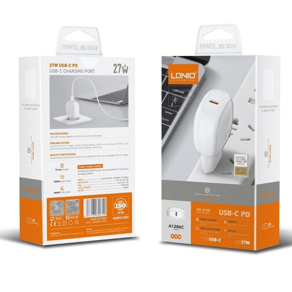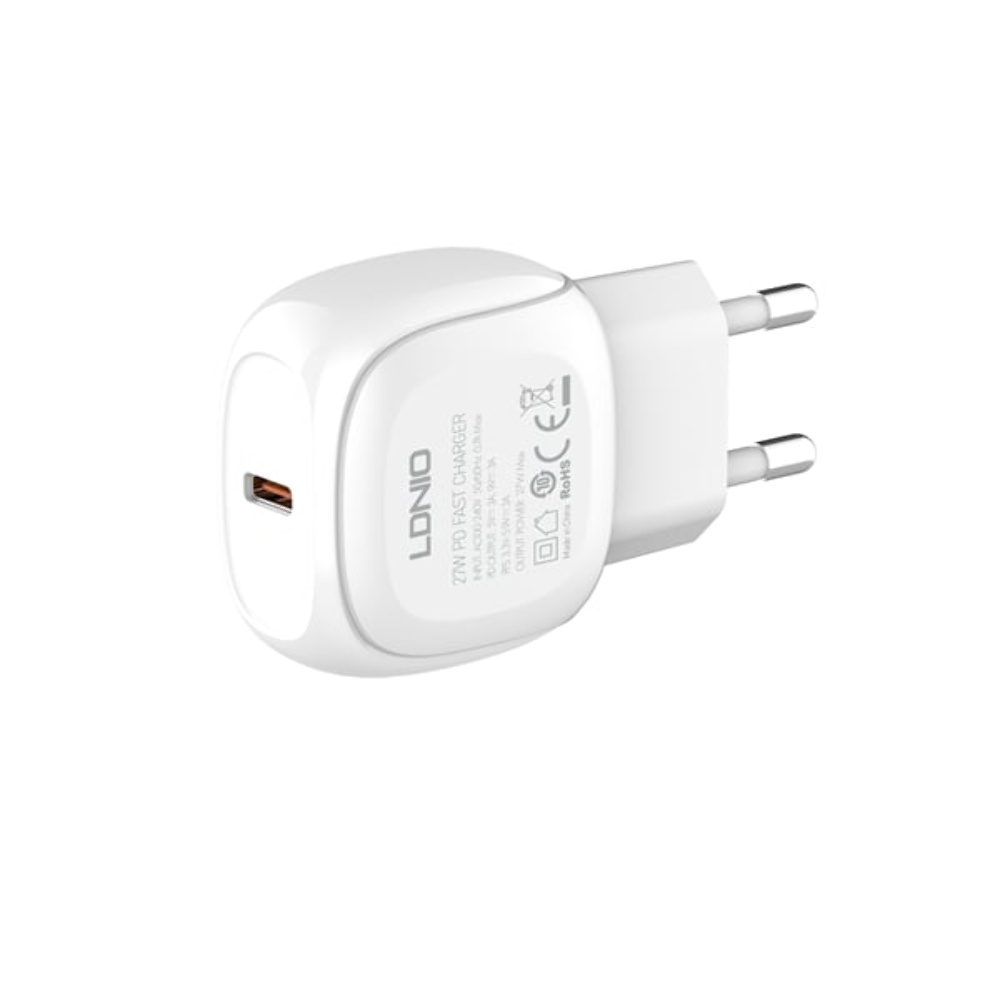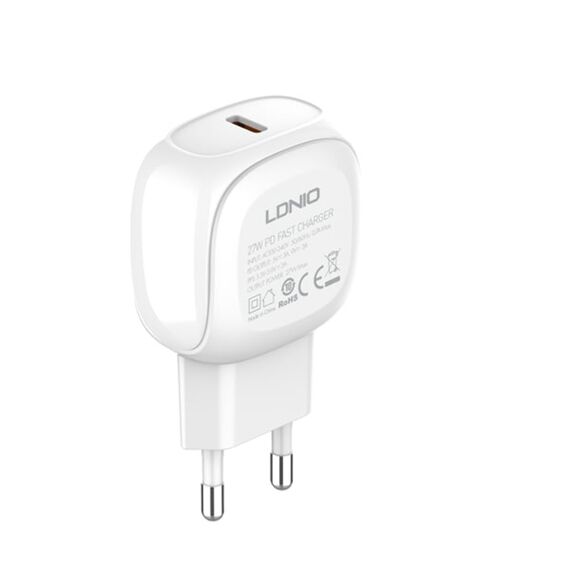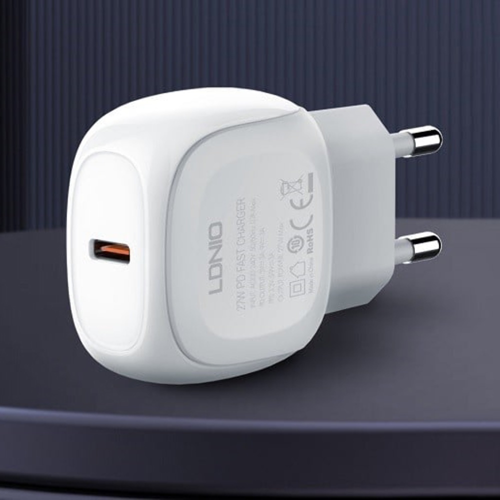 Мережевий зарядний пристрій Ldnio A1206C Type-C PD 27W білий + кабель Type-C to Lightning - це зручне та надійне рішення для швидкого заряджання ваших пристроїв. Не пропустіть можливість забезпечити ефективну зарядку своїх гаджетів за допомогою цього якісного зарядного пристрою!