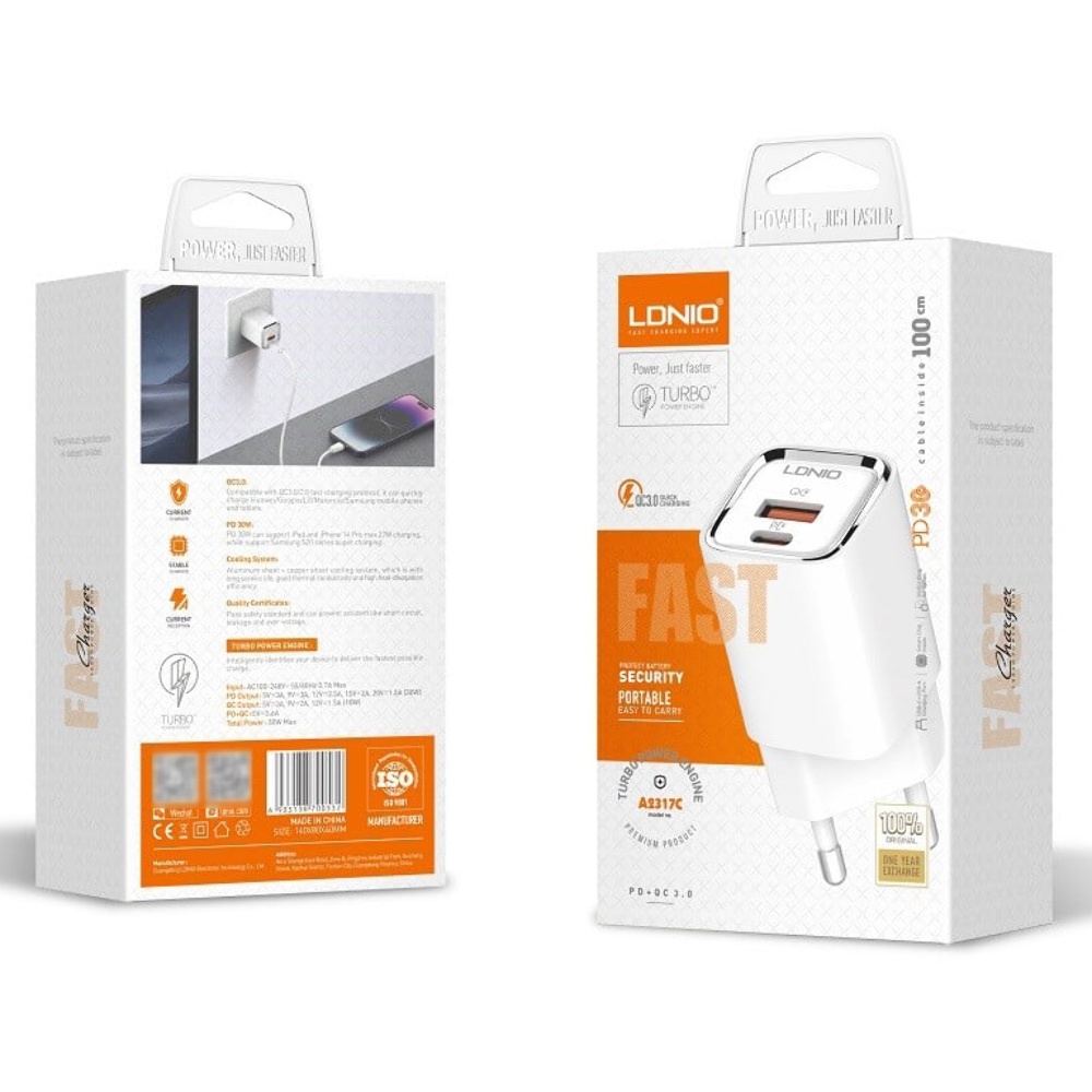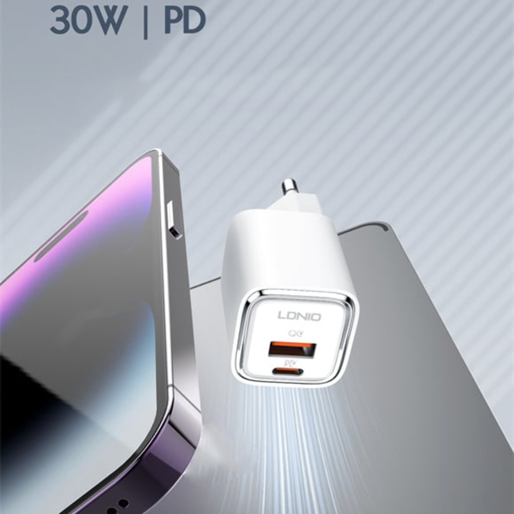 Мережевий зарядний пристрій Ldnio A2317C USB/ Type-C QC PD 30W білий - ваш ідеальний супутник для швидкої та ефективної зарядки пристроїв.