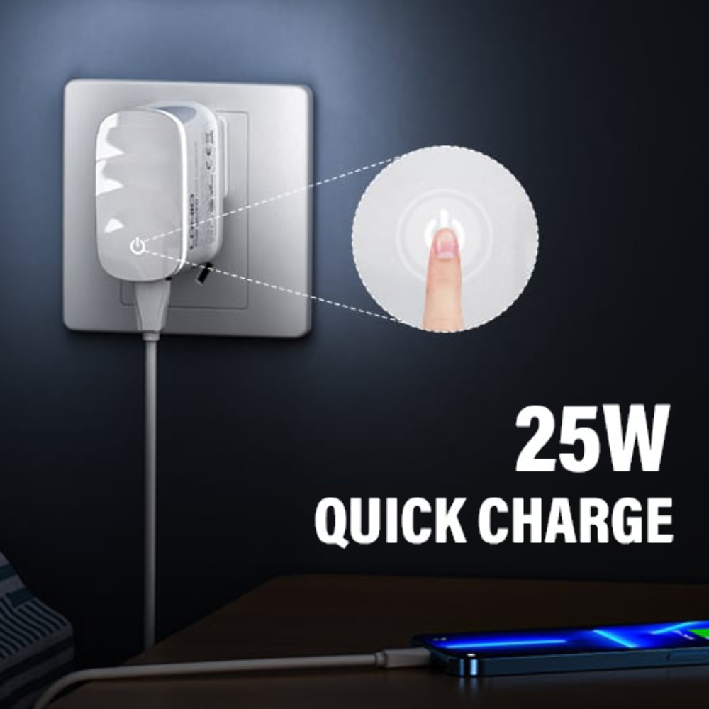Мережевий зарядний пристрій Ldnio A2423C USB/ Type-C QC PD 25W нічник білий + кабель Type-C to Lightning - це інноваційний пристрій, який поєднує в собі функції зарядного пристрою і нічника. Це ідеальний вибір для тих, хто шукає зручність та комфорт в одному компактному пристрої. Завдяки потужному зарядному функціоналу та приємному світлу нічника, ви зможете заряджати свої пристрої та створювати затишну атмосферу в кімнаті одночасно.