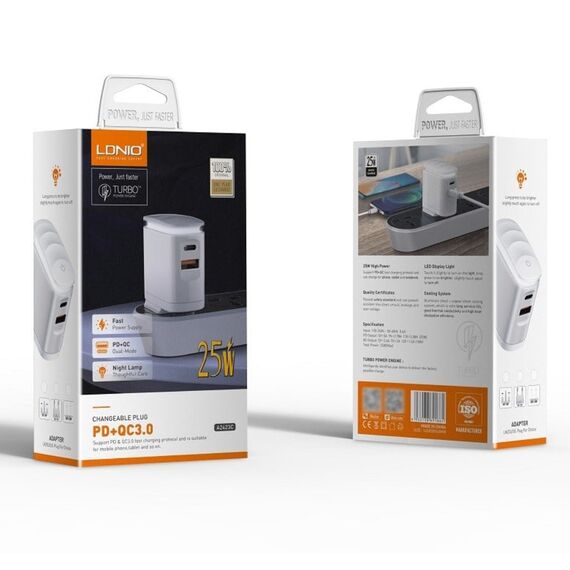 Мережевий зарядний пристрій Ldnio A2423C USB/ Type-C QC PD 25W нічник білий + кабель Type-C to Lightning - ваш надійний і функціональний помічник для заряджання пристроїв і створення затишної атмосфери у вашому приміщенні.