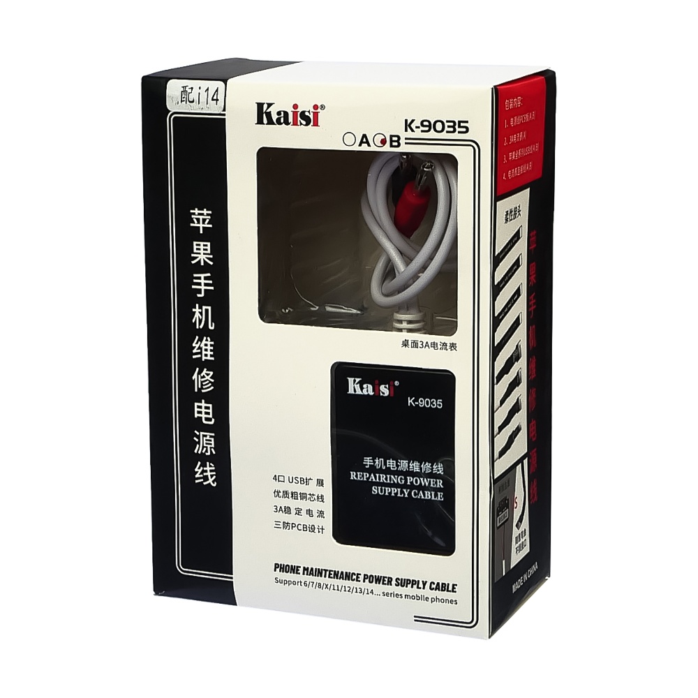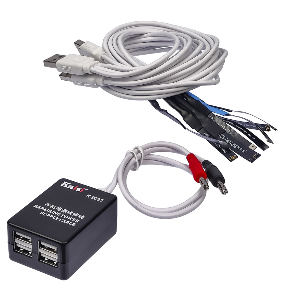 Кабелі для блоків живлення Kaisi K-9035B, з роз'ємами для підключення плат iPhone 6-14 Pro Max і перехідником від БП до USB (4шт)