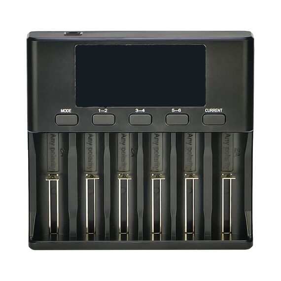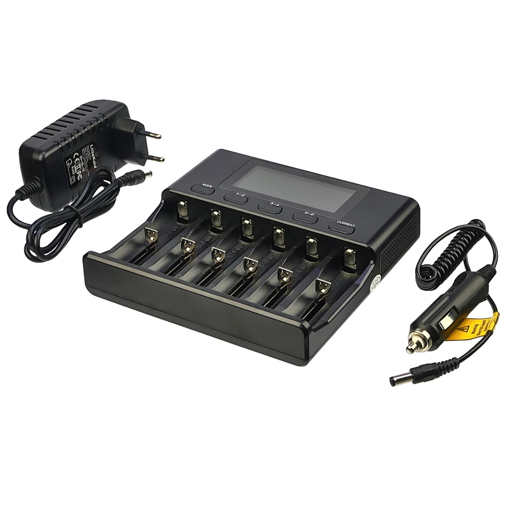 - Струм заряду: Li-Ion/IMR/LiFePO4 2000mA*3 (тільки для слотів №1/3/6), 1000mA*6/700mA*6/500mA*6, NiMH/NiCd: 500mA;