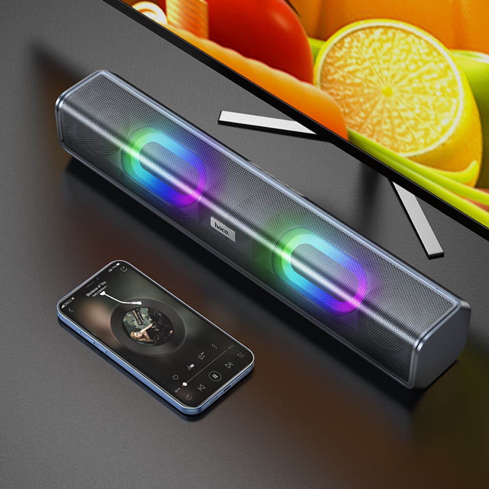 Сіра Портативна Bluetooth колонка Hoco BS49 зі світломузикою - це унікальний пристрій, який дозволить вам насолоджуватися музикою в будь-якому місці та створити неповторну атмосферу завдяки світлодіодному підсвічуванню.