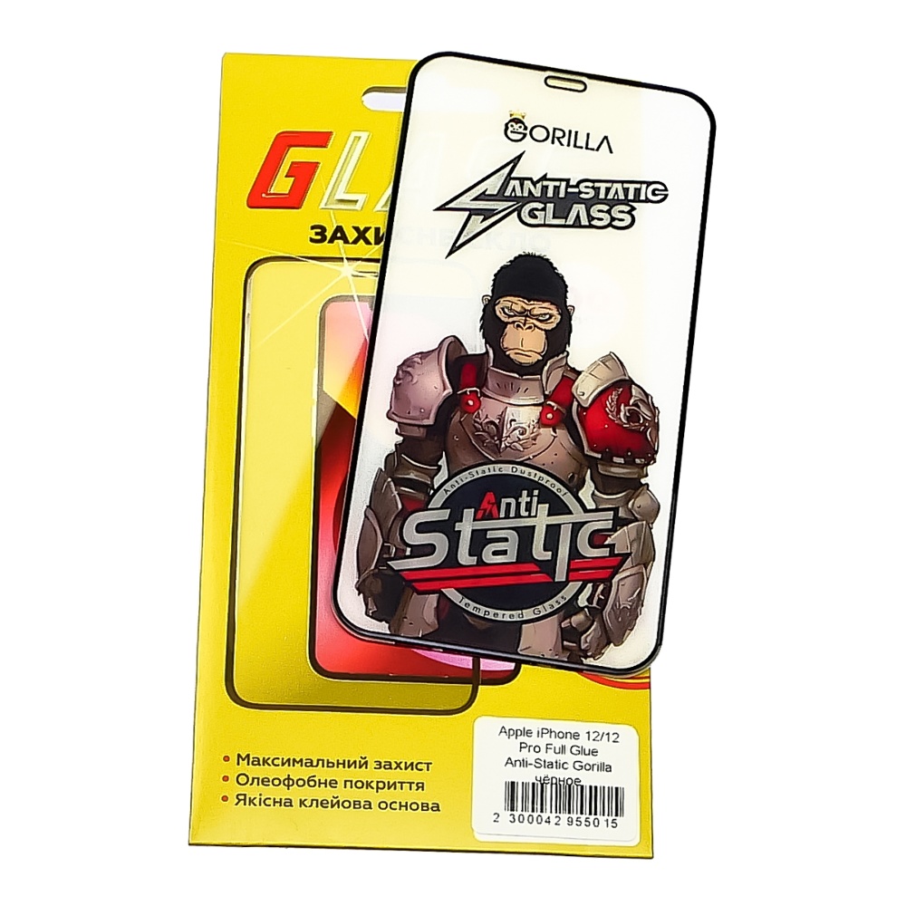 Захисне скло для Apple iPhone 12/ 12 Pro Full Glue Anti-Static (0.3 мм, чорне)