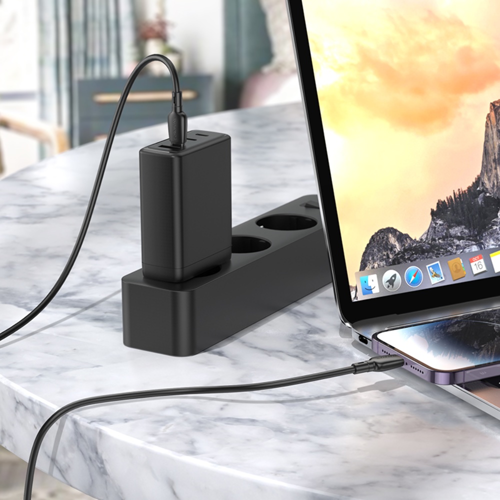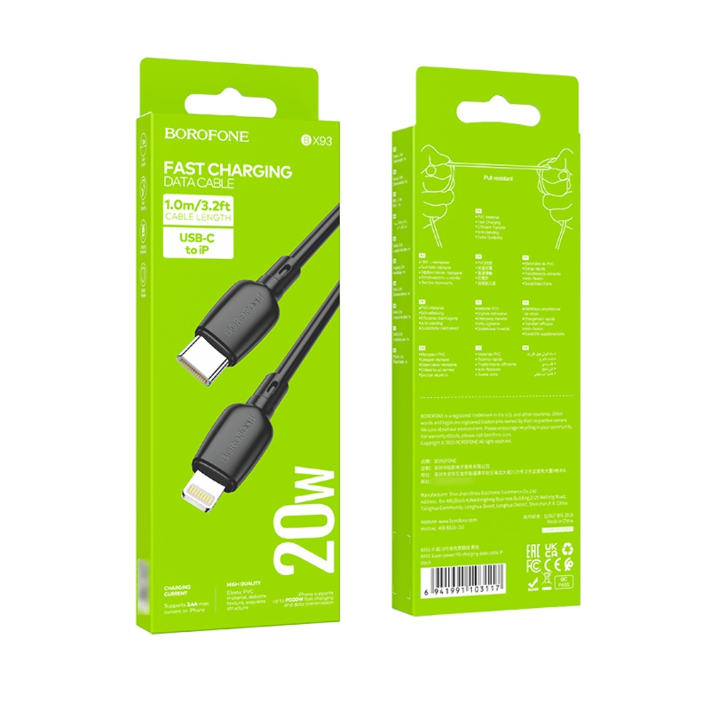 Кабель Borofone BX93 Type-C to Lightning 1m чорний забезпечує ефективну передачу даних та швидку зарядку для ваших пристроїв з роз'ємами Type-C та Lightning. З його допомогою можна підключити, наприклад, ваш iPhone до пристроїв з роз'ємом Type-C для зручної і швидкої зарядки. Кабель має міцну оболонку та високоякісні матеріали, забезпечуючи довгий термін служби.