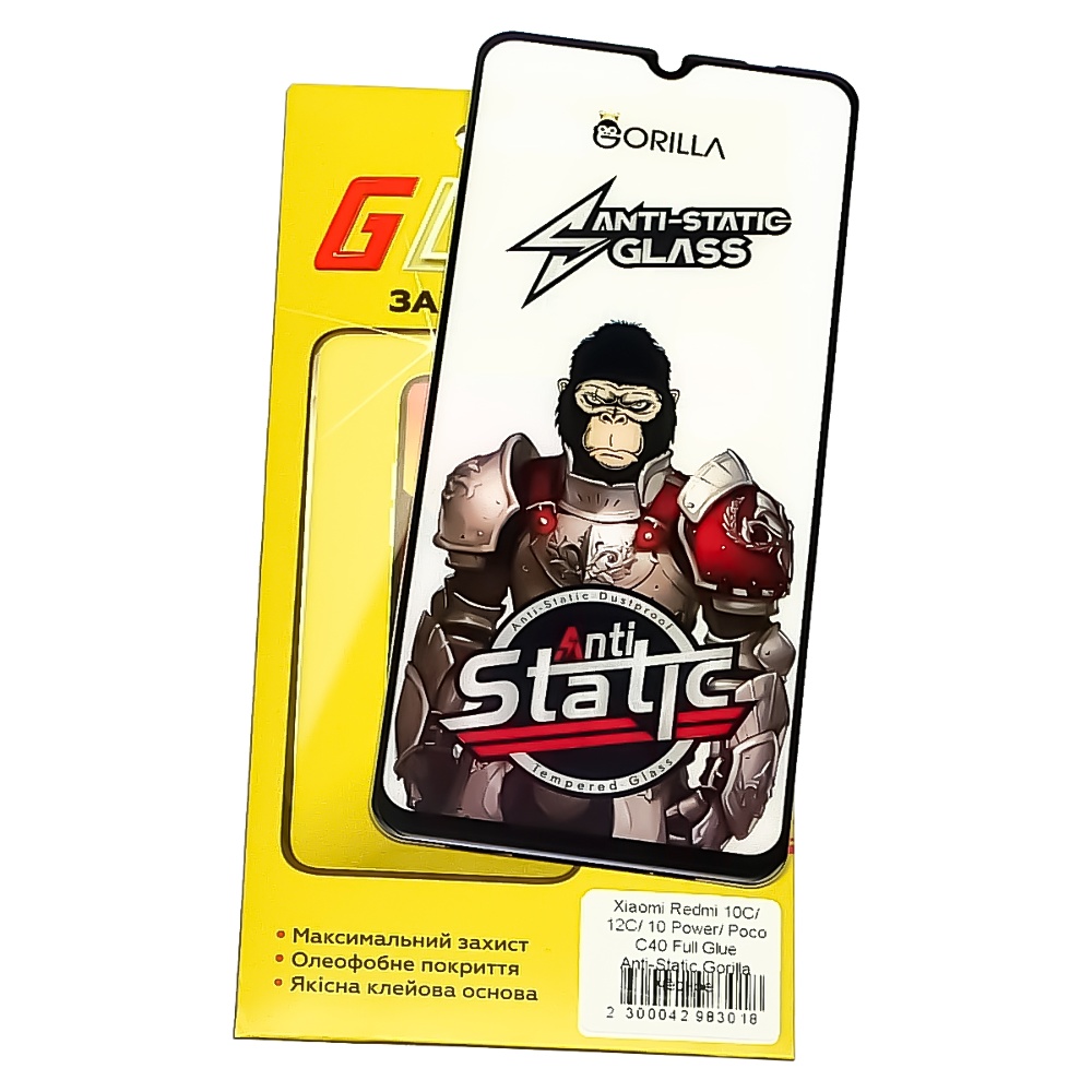Захисне скло для Xiaomi Redmi 10C/ 12C/ 10 Power/ Poco C40 Full Glue Anti-Static (0.3 мм, чорне)