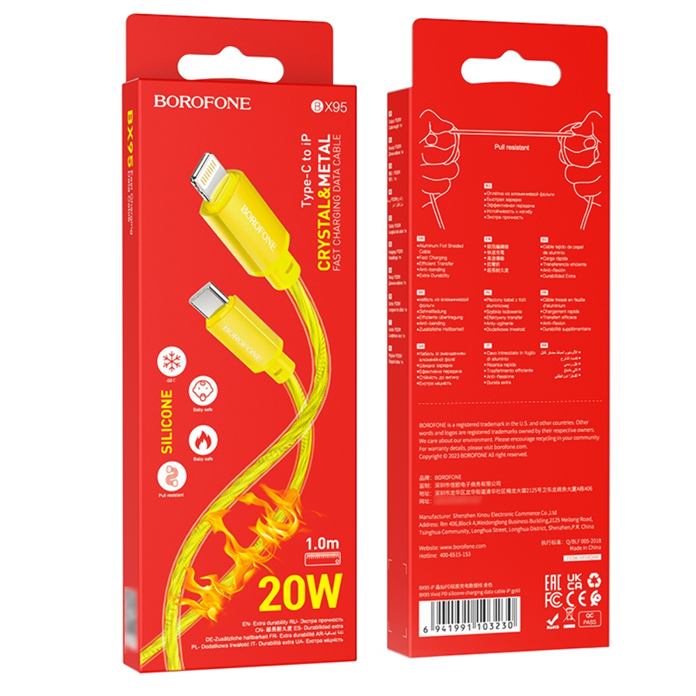 Кабель Borofone BX95 Type-C to Lightning 1m золотистий забезпечує швидку зарядку потужністю до 20W для пристроїв Apple. Виготовлений із міцних матеріалів, він забезпечує стабільну передачу даних та надійне з'єднання для вашого пристрою.