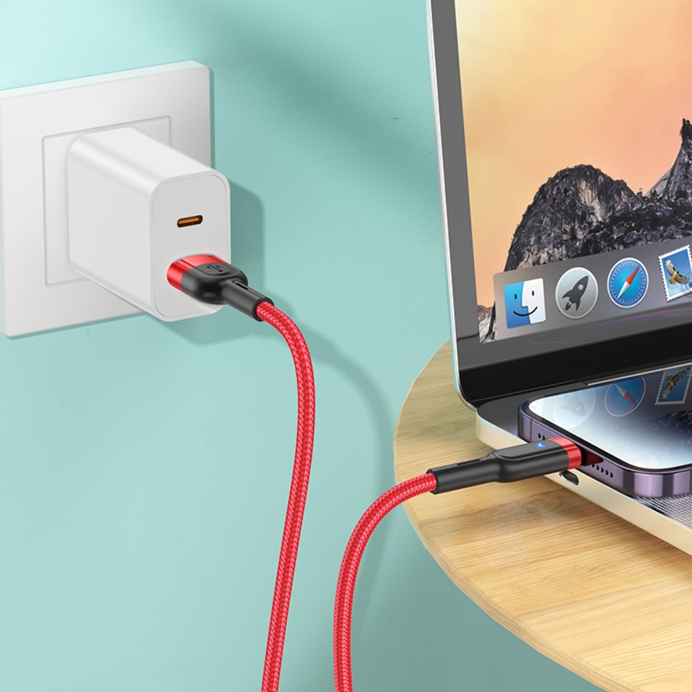 Забезпечте надійне заряджання та передачу даних з червоним кабелем Hoco U117 USB to Lightning 1.2m. З його довжиною 1.2м і вагою всього 27г, він легкий та зручний у використанні.