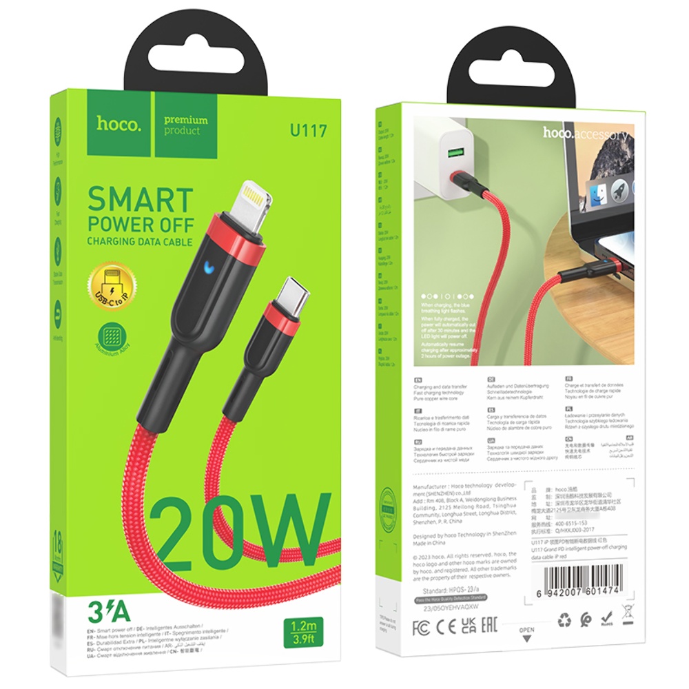 Оптимізуйте заряджання та передачу даних з кабелем Hoco U117 Type-C to Lightning 1.2m. Цей червоний кабель надає надійне з'єднання та підтримує високу швидкість передачі даних.