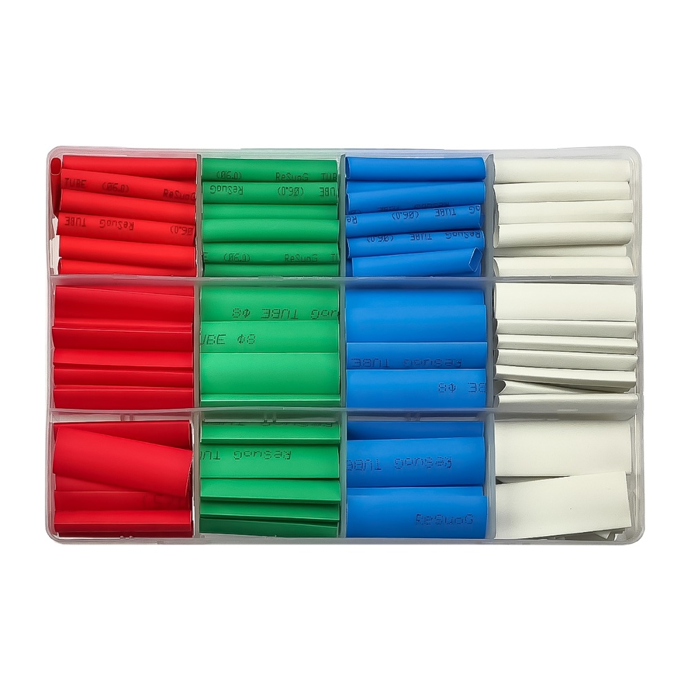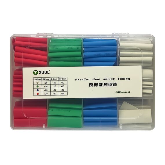Набір термозбіжних трубок 2UUL 200 шт, 4 кольори, діаметр 6/8/10 мм у пластиковому боксі