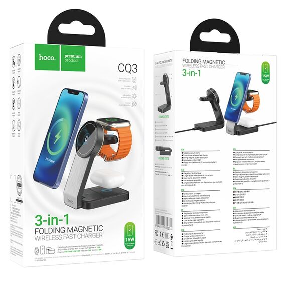 Бездротовий зарядний пристрій Hoco CQ3 3в1 магнітний чорний