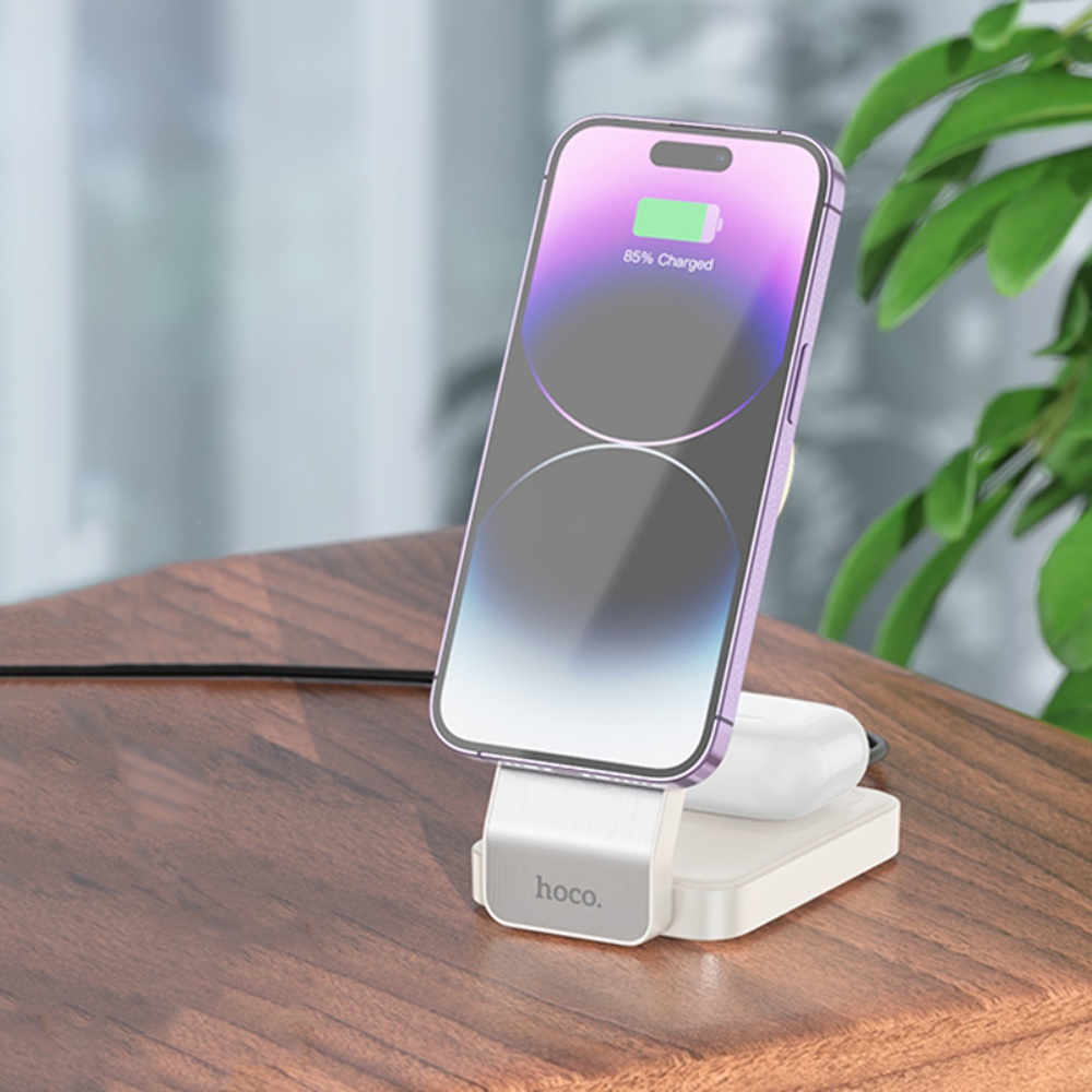 Бездротовий зарядний пристрій Hoco CQ3 3в1 магнітний молочно-білий