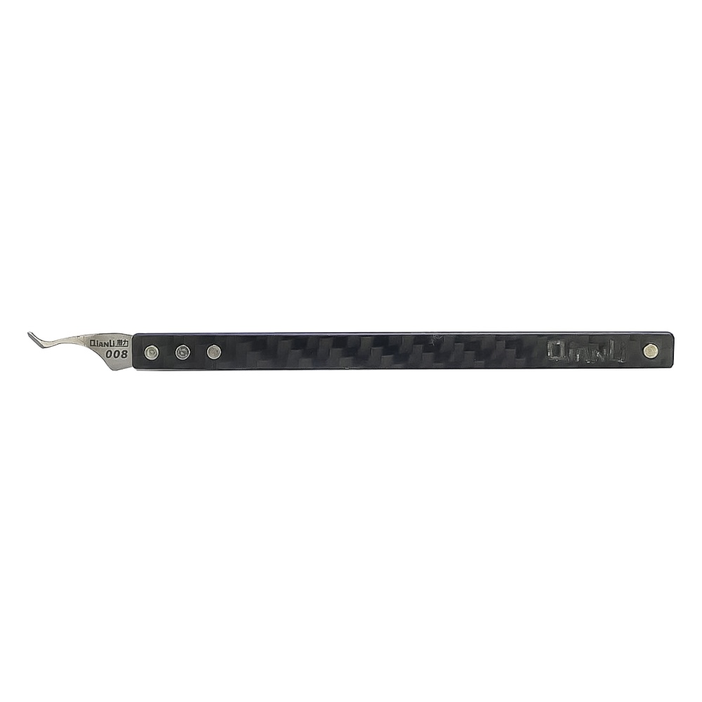 Інструмент QianLi 008 Carbon Fiber призначений для видалення компаунду і інших матеріалів під час ремонту мобільних пристроїв. Цей інструмент поєднує в собі легкість, міцність і ефективність, забезпечуючи точне і безпечне очищення поверхонь.