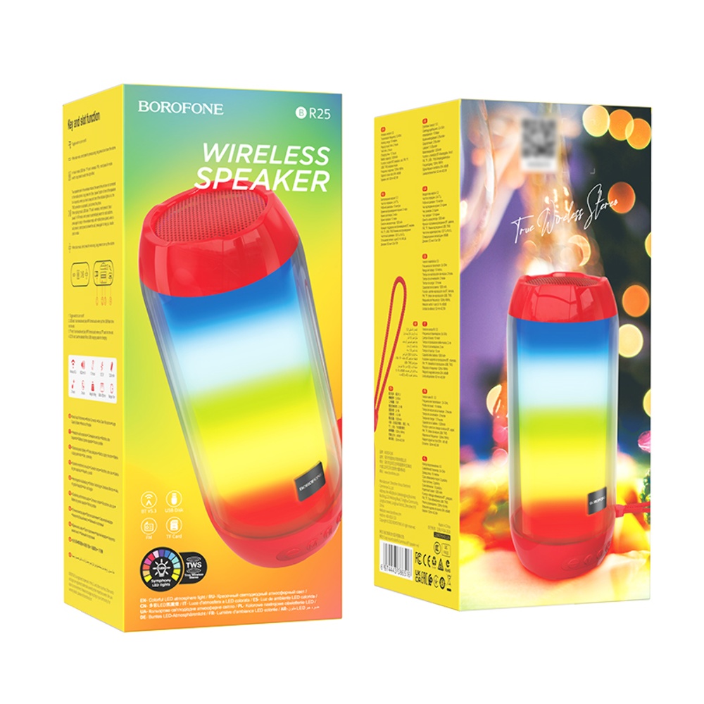 Портативна Bluetooth колонка Borofone BR25 зі світломузикою червона – це стильний та функціональний пристрій для відтворення музики з ефектним світловим супроводом.