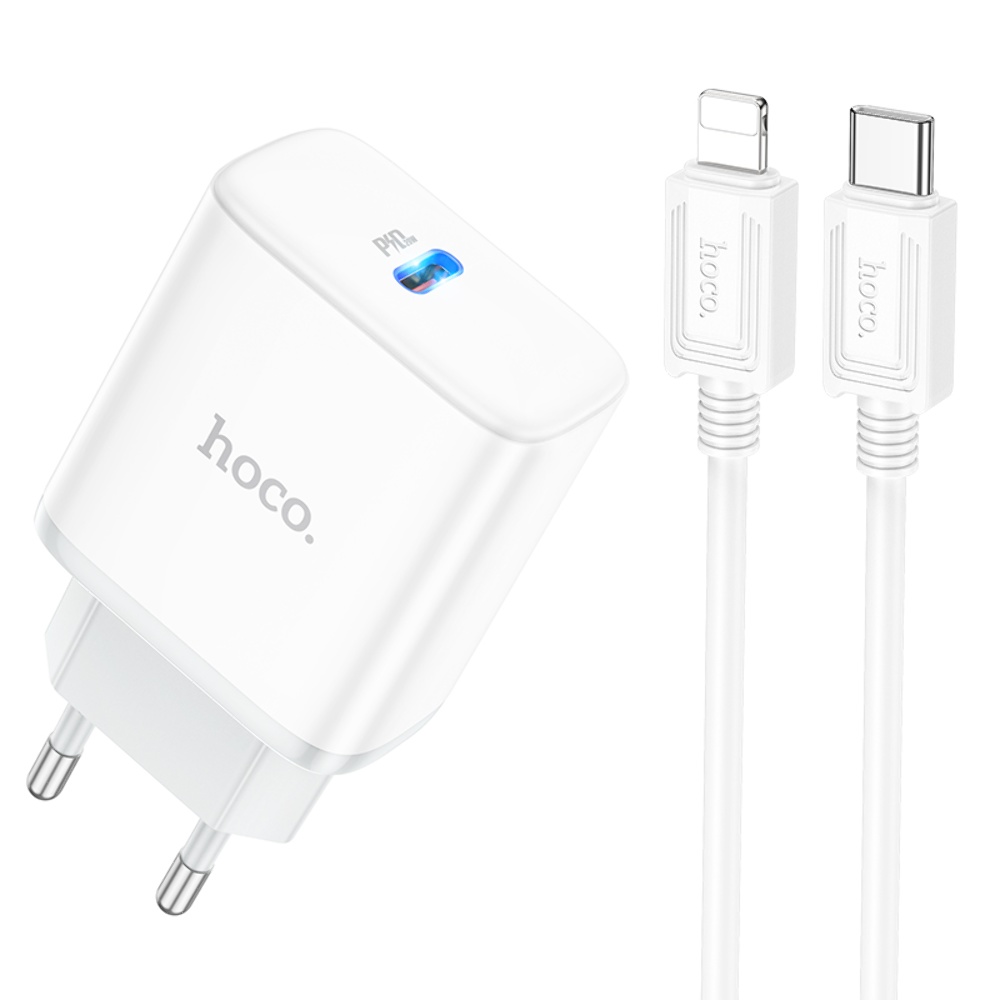 Мережевий зарядний пристрій Hoco C104A Type-C PD 20W білий + кабель Type-C to Lightning