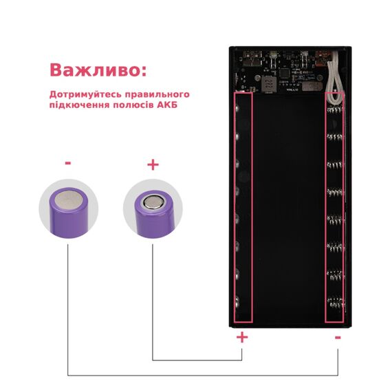 Вам надається вибір між акумуляторами ємністю 3000 mAh та акумуляторами ємністю 2500 mAh, що дозволяє зібрати повербанк Multi-Power L16 під ваші конкретні потреби.