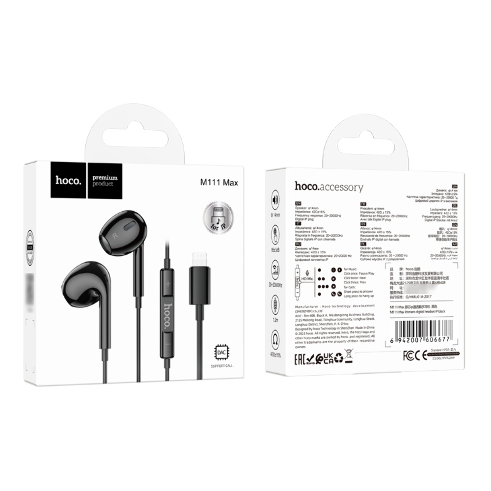 Навушники вкладки Hoco M111 Max Lightning у чорному кольорі - це стильне та функціональне рішення для вашого аудіодосліду.